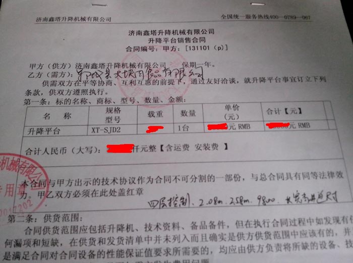 山西省第二建筑工程公司采購我公司導(dǎo)軌式升降貨梯